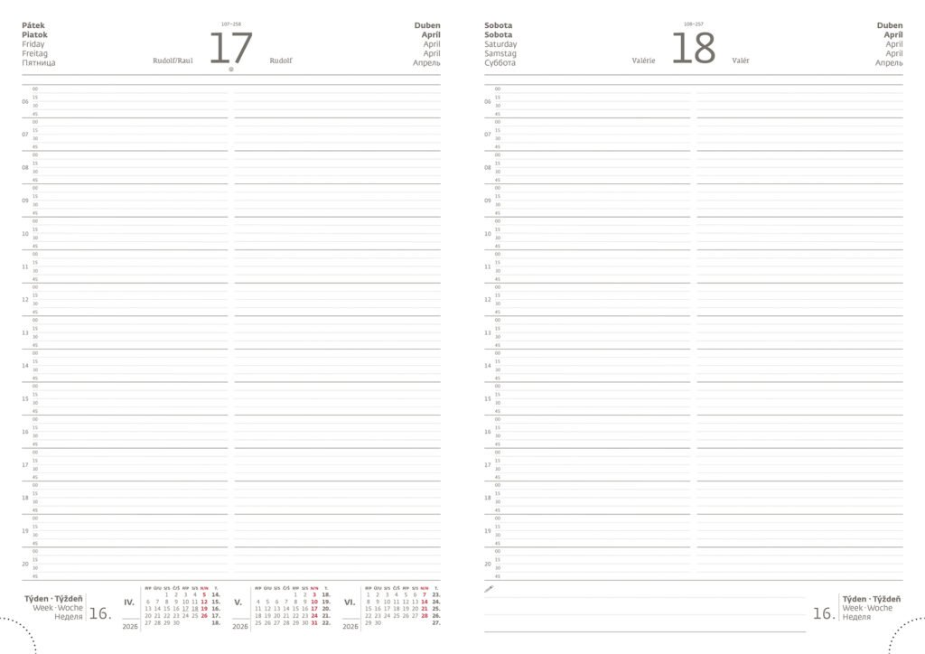 Formát diára: 210 x 297 mm Rozsah diára: 400 strán Kalendárium: denné