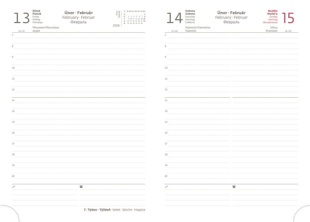 Diár Soft Recyklovaný diár s mäkkým povrchom. Elegantný diár vyrobený za použitia recyklovaných materiálov s príjemným mäkkým povrchom, ktorý dodáva luxusný pocit pri dotyku. Vnútorné listy z recyklovaného bieleho ofsetového papiera zabezpečujú pohodlné písanie. Dosky umožňujú personalizáciu sleporažbou. Diár je vhodný pre náročného a ekologicky zmýšľajúceho používateľa. Diár obsahuje: osobné údaje, plánovač dovolenky (mesačný prehľad), plánovací kalendár, telefónne predvoľby, štátne sviatky Českej a Slovenskej republiky, medzinárodné sviatky, ročný výhľad, denný layout, adresár, mapa Európy a Českej a Slovenskej republiky