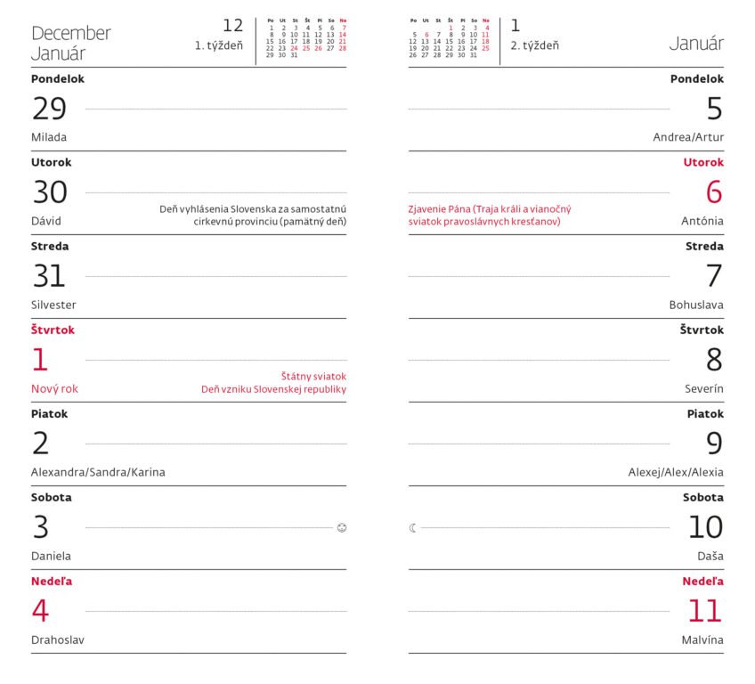 Formát: 85 x 154 mm Rozsah: 80 strán Kalendárium: dvojtýždňové slovenské menné