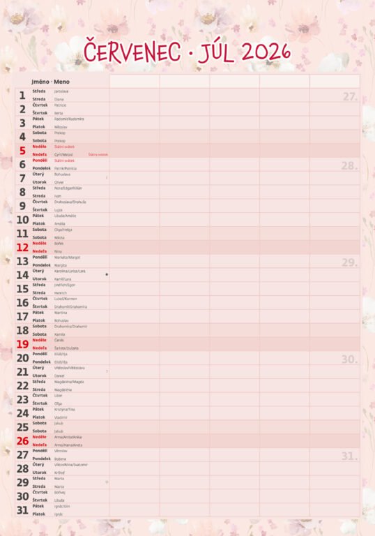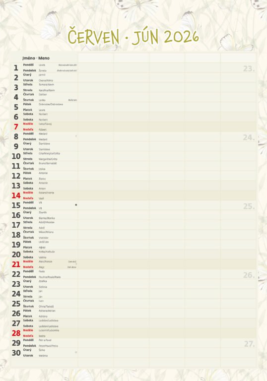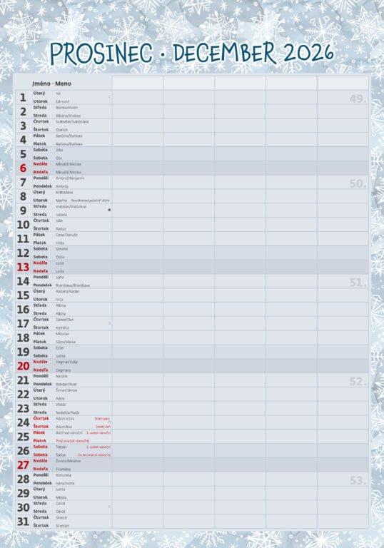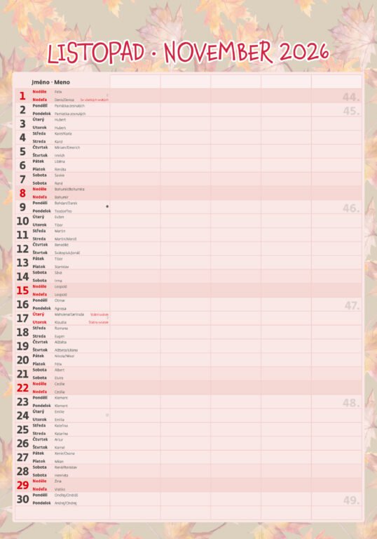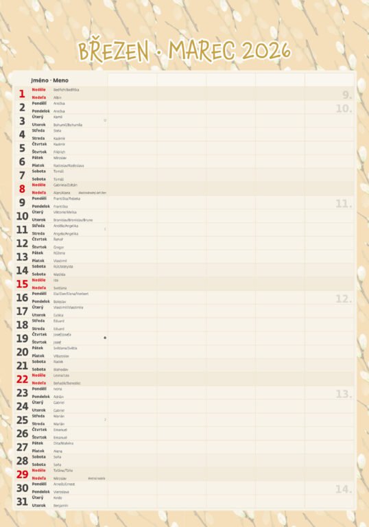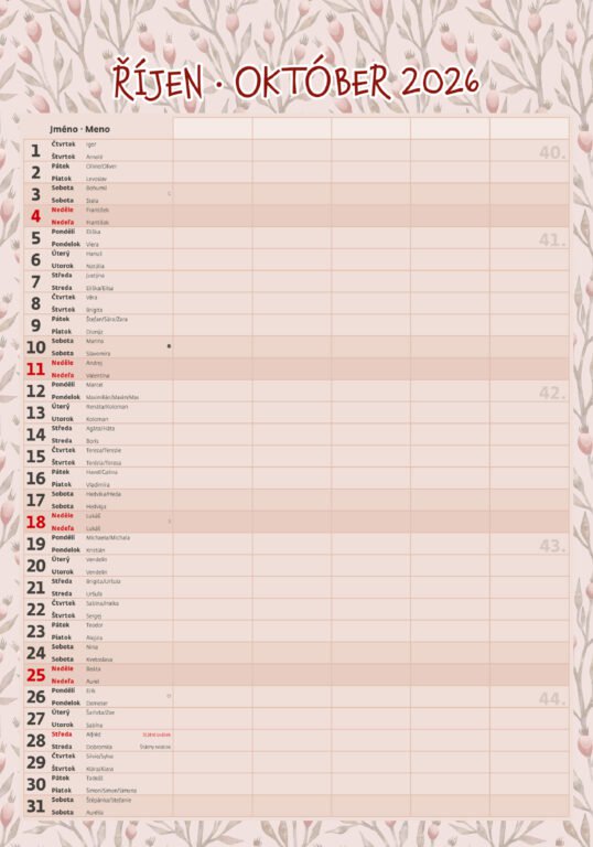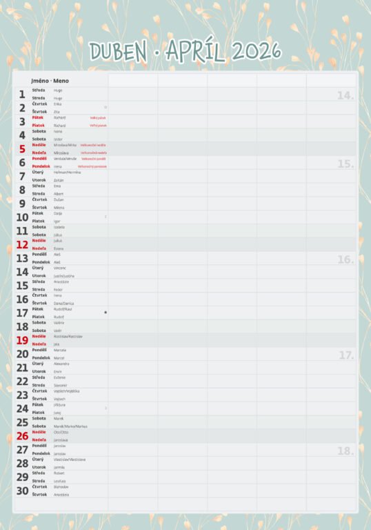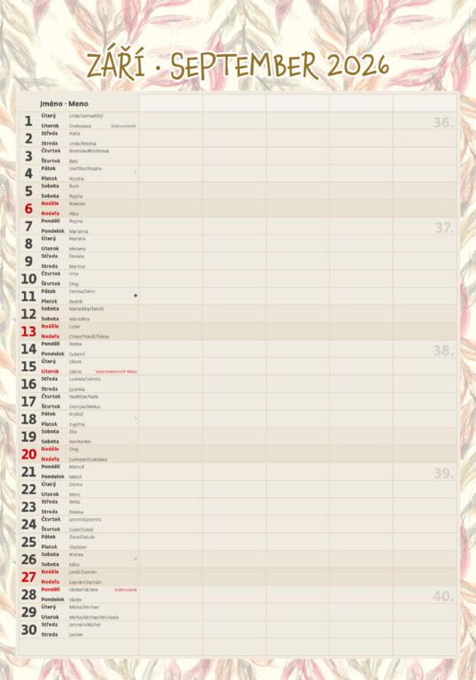 Vlastnosti kalendára: