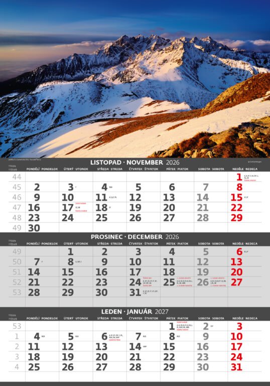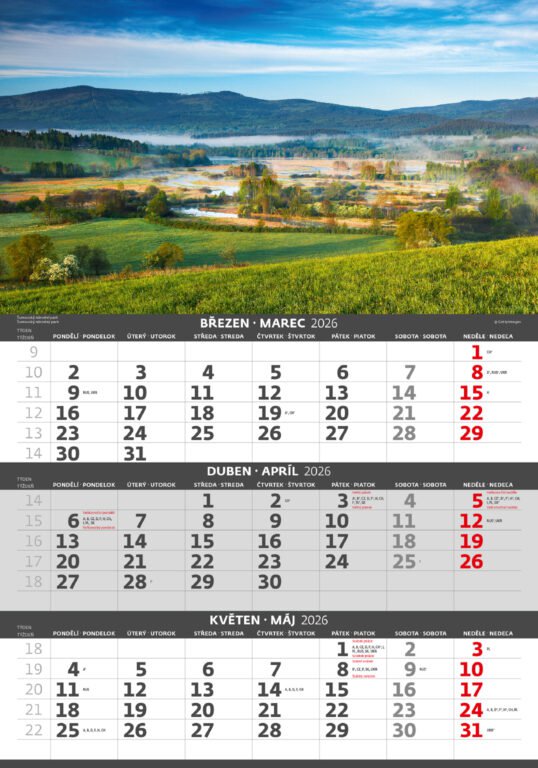 Trojmesačný kalendár Hory 2026