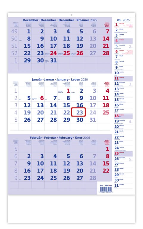 Trojmesačný pracovný kalendár modrý 2026