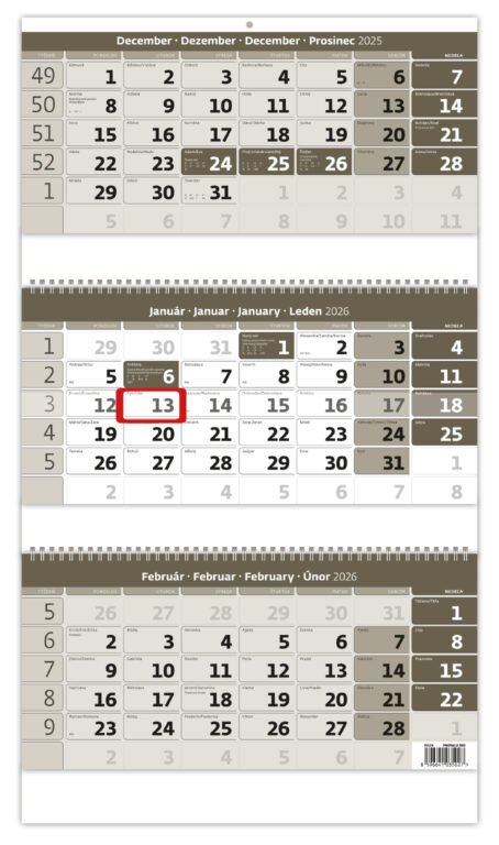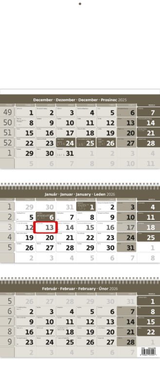 Trojmesačný pracovný kalendár šedý 2026