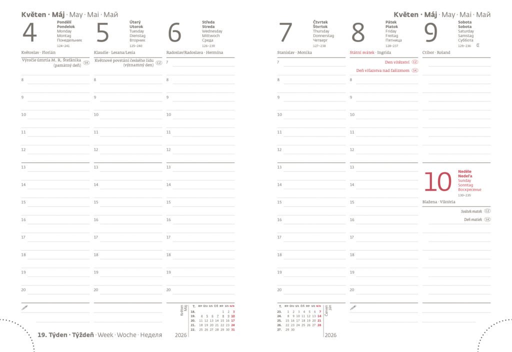 Diáre Black+, Double+ Dosky diára sú vyrobené z matného materiálu na báze zušľachteného papiera, ktorý je bez štruktúry a tým neruší vzhľad samotného produktu. Diár je doplnený gumičkou na uzavretie a pútkom na pero. Kompletný dizajn dopľňa obšitie dosiek niťou. Do diára možno raziť cez fóliu, prípadne ich potlačiť sieťotlačou. Diár obsahuje: osobné údaje, plánovač dovolenky (mesačný prehľad), plánovací kalendár, telefónne predvoľby, štátne sviatky Českej a Slovenskej republiky, medzinárodné sviatky, ročný výhľad, týždenný layout, adresár, mapa Európy a Českej a Slovenskej republiky